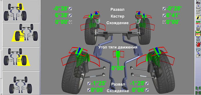 - измерение углов установки колес с выдачей отчета на бумажном носителе