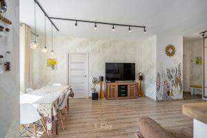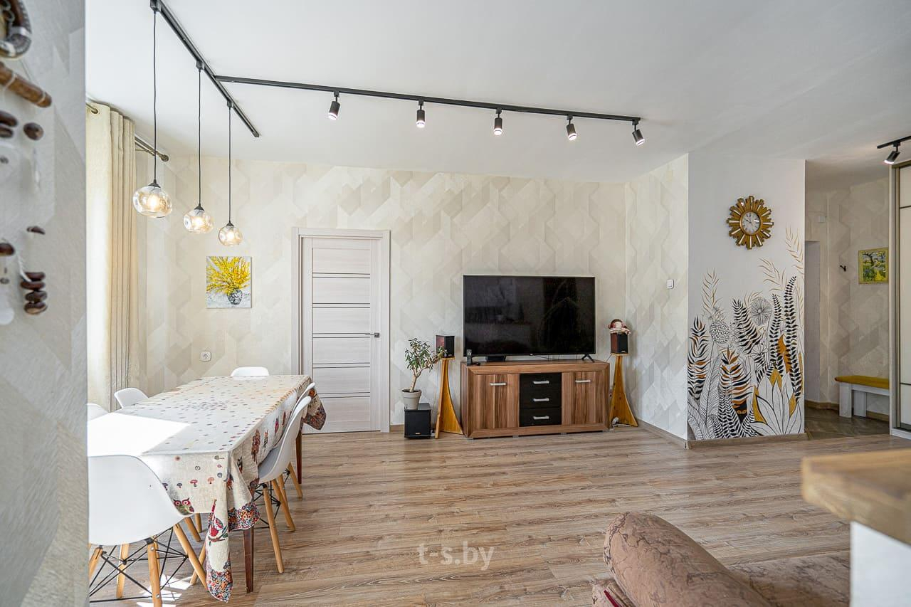 Просторная четырехкомнатная квартира в Ленинском районе. Общая площадь 100 м.кв. Год постройки дома 2013. Для комфортного проживания квартира полностью укомплектована мебелью и бытовой техникой: холодильник, телевизор, стиральная и посудомоечная машины, варочная поверхность, духовой шкаф, печь СВЧ. Полы с подогревом. Две гардеробные комнаты, кладовая. Рядом с домом крупный торговый центр «Корона-Сити», река Свислочь, красивейший уголок Минска - Лошицкий парк, велодорожка, школы, детские сады и много другое.