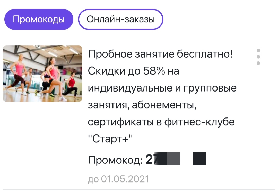 - Промокод даёт право на скидку до 50% на услуги в фитнес-клубе "Старт+"