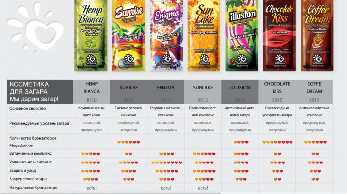 Уважаемые клиенты! Предлагаю Вашему вниманию сравнительную таблицу кремов для загара по параметрам, взглянув на которые,  Вы с легкостью сможете выбрать себе оптимальный крем. Данная таблица так же есть в каталоге в нашем солярии в свободном доступе.