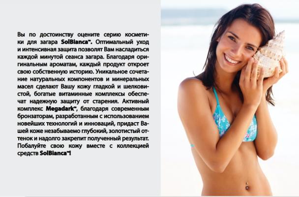 - Профессиональная косметика для загара в солярии - "SolBianca", стикини, шапочки и пр