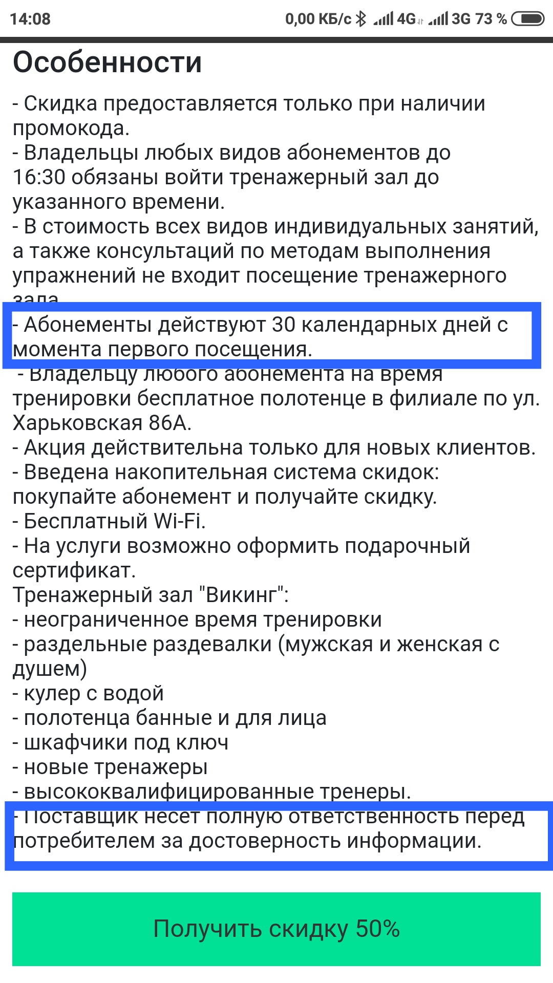 - Внимание! Для заключения договора с тренажерным залом "Викинг" новому клиенту при себе обязательно иметь документ, удостоверяющий личность (паспорт) и назвать промокод