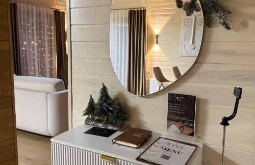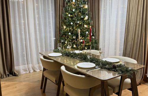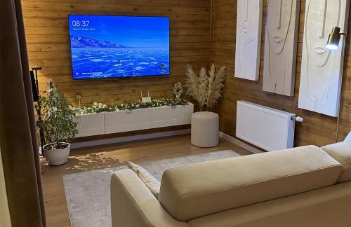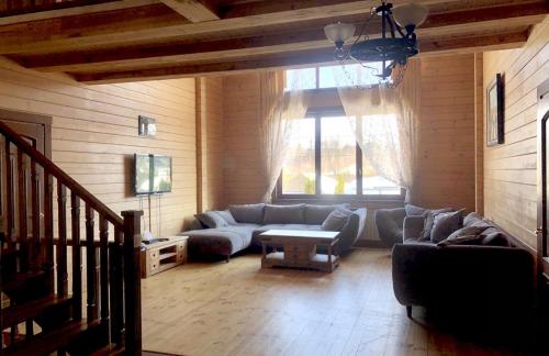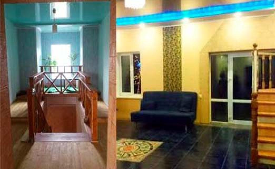 На первом этаже расположен банкетный зал - гостиная, столовая, спальня, мини бильярд и ванная комната. Второй этаж - холл, 4 спальни, три санузла. Имеется электроплита, холодильник, электрочайник, а в шкафчиках вся необходимая посуда. Достойно украшает интерьер гостиной спутниковое ТВ и караоке.