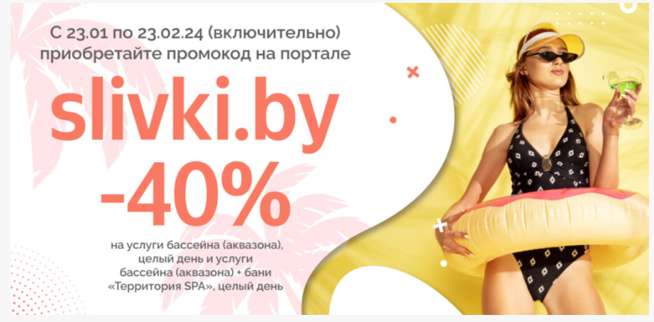 - Промокод дает право на скидку 35% на посещение аквапарка "Лебяжий"