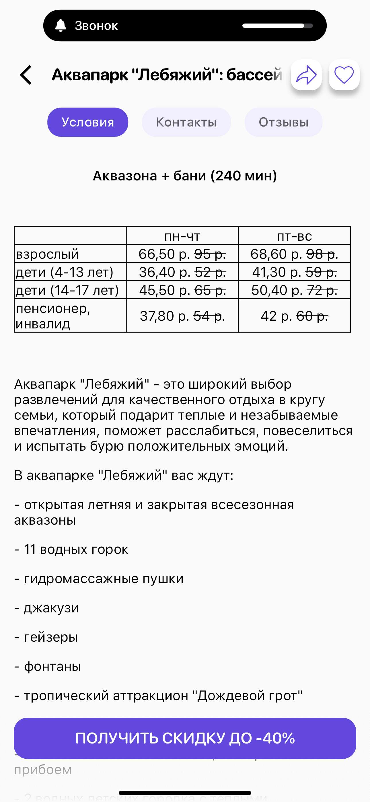 - Внимание! Данное предложение не суммируется с внутренними акциями аквапарка