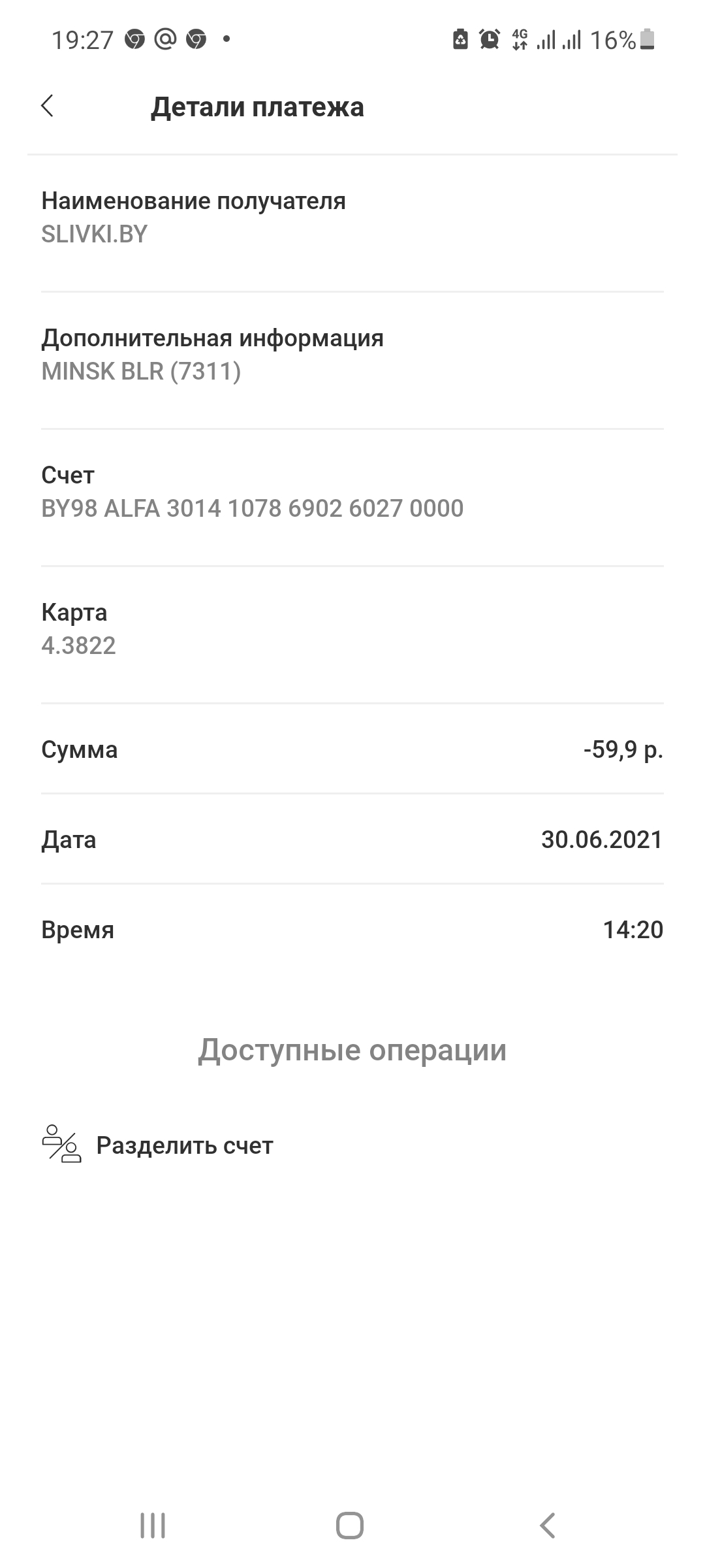 Добрый день. Напишите, пожалуйста, нам на почту info@slivki.by, прикрепив чек оплаты