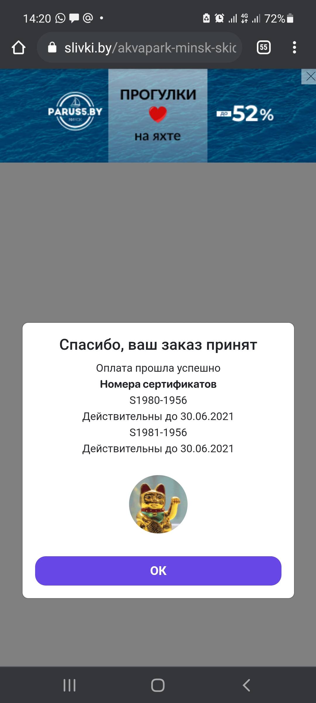Здравствуйте приобрели 2 взрослых билета и 1 детский билет на аквазону + 6 бань 3 часа, написали на сайте оплата прошла успешно и дальше тишина. Что делать?