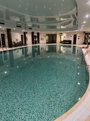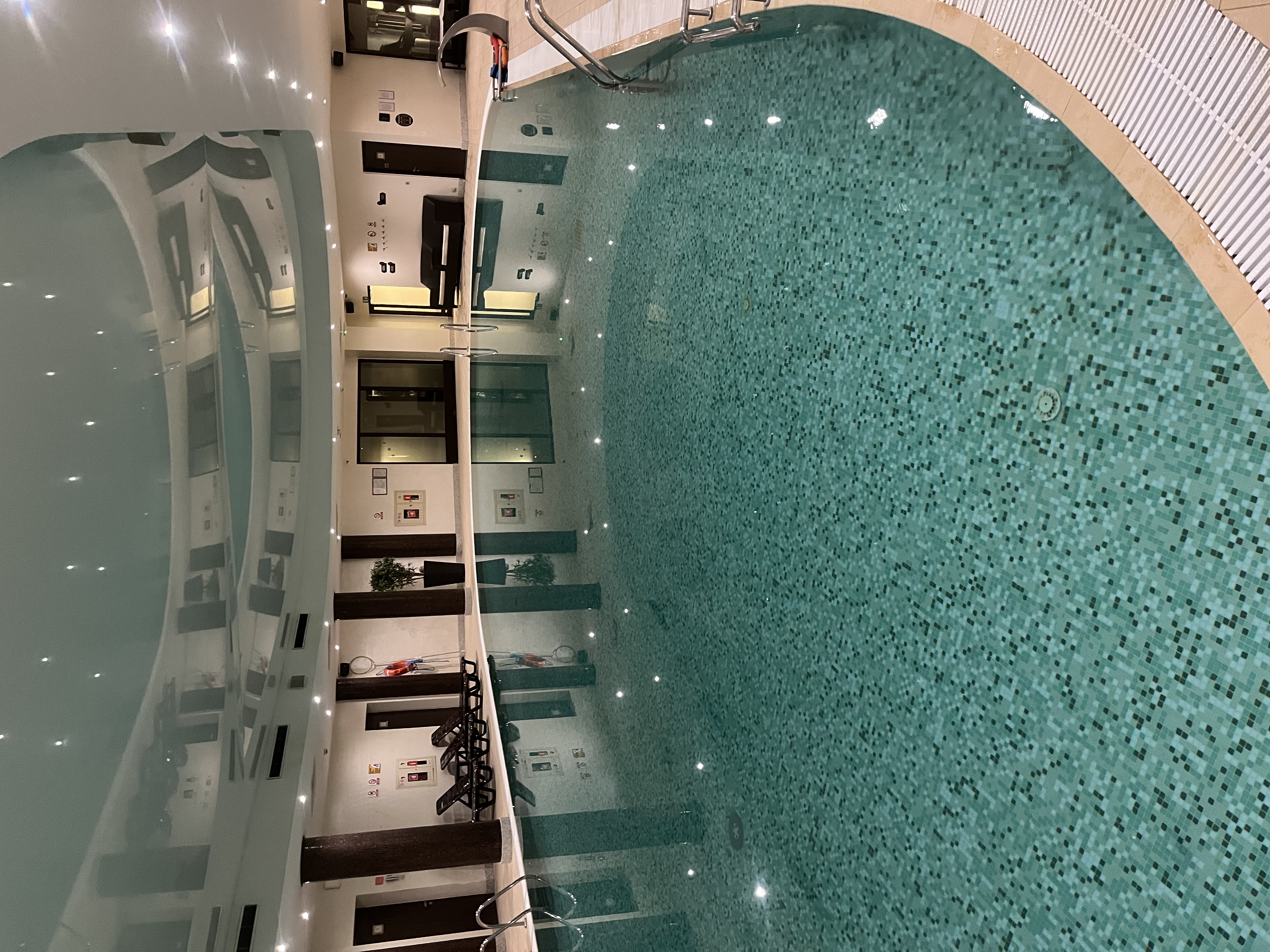 Приятная обстановка, тихая, уютная, расслабляющая атмосфера. Чистый теплый бассейн, джакузи просторный, но горячий) Просторно, всем хватает места. Красивый интерьер. За требование шапочек - отдельный респект, в бассейне спокойно плаваешь, а не отбиваешься от чужих волос!👍