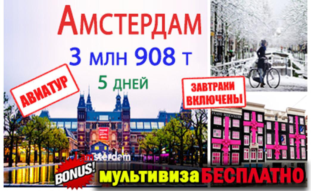 - Предварительно уточняйте стоимость путешествия на конкретные даты. - Промокод дает право на скидку 40% на туруслугу по организации путешествия для тура в Амстердам. - Стоимость туруслуги по организации путешествия смотрите выше. - Стоимость на одного человека при заказе поездки: 3 908 000 руб. - Даты тура: 6, 8, 10, 13, 15, 17, 20 января 2016 г. - Продолжительность тура: 5 дней. - Даты и описание тура смотрите здесь или уточняйте по телефонам. - Один промокод - тур для одного человека со скидкой.