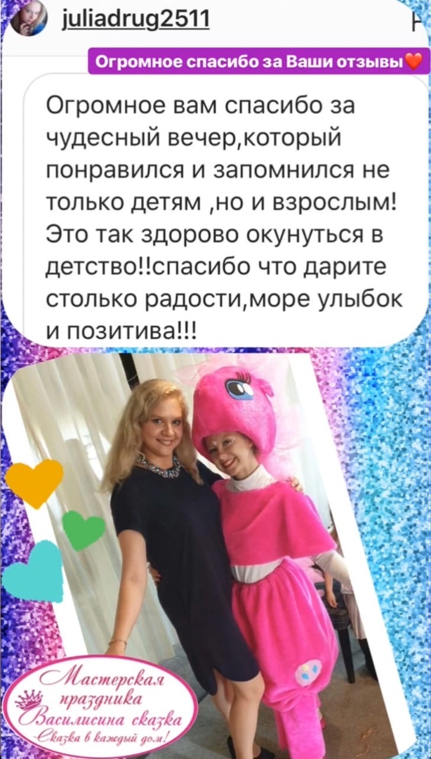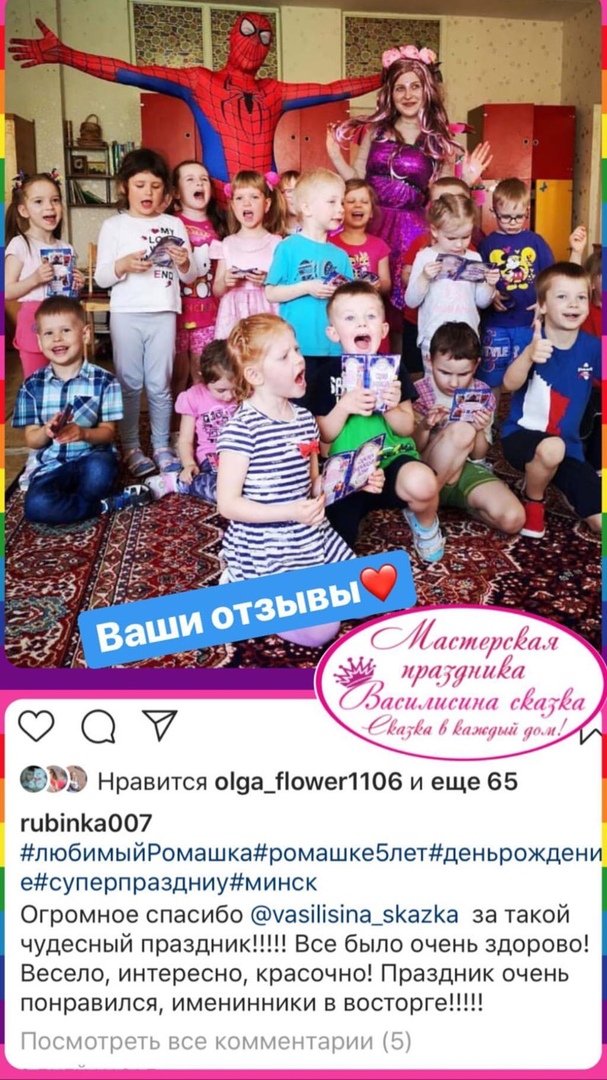 - Описание программ, фото, видео и отзывы о наших праздниках можно посмотреть ниже и у нас в соцсетях ВКонтакте и Instagram