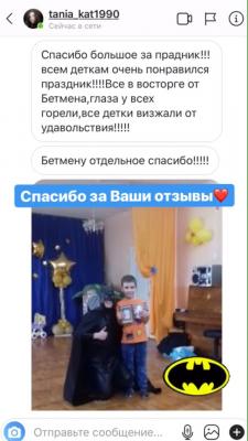 - часовая программа с аниматором на выбор (стоимость зависит от выбранного героя): от 110 р. от 120 р.