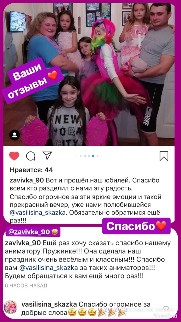 - Больше фото, видео, а также отзывы о наших праздниках можно посмотреть на нашей странице ВКонтакте и Instagram