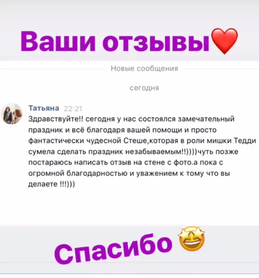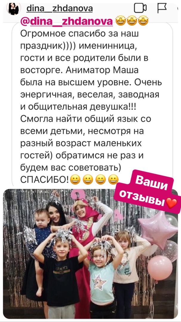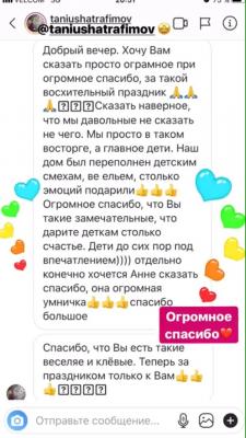 - Больше фото, видео, а также отзывы о наших праздниках можно посмотреть на нашей странице ВКонтакте и Instagram