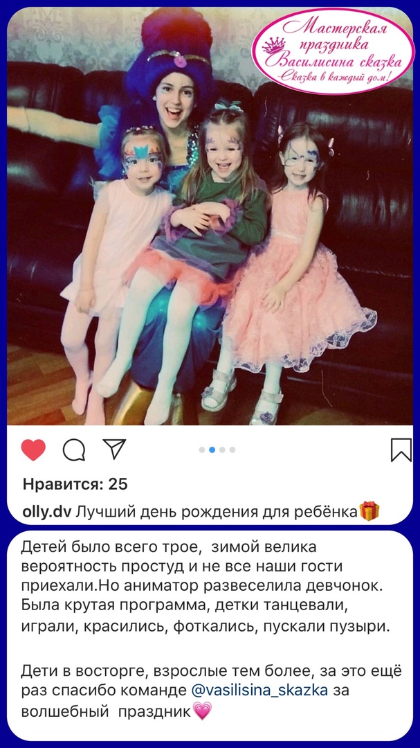 - Описание программ, фото, видео и отзывы о наших праздниках можно посмотреть ниже и у нас в соцсетях ВКонтакте и Instagram