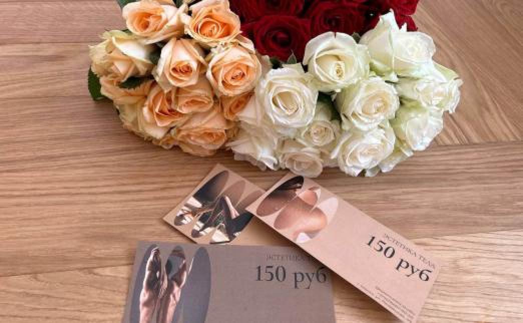 - При покупке подарочного сертификата от 100 р. на все услуги студии (смотрите ниже) - букет из 15 роз в подарок, варианты оформления смотрите ниже (любой заказ полученный до четверга, доставляем в пятницу). Сумму сертификата не обязательно реализовывать единовременно. Можно сделать подарок близким или порадовать себя!