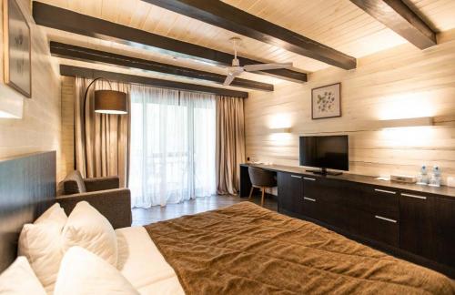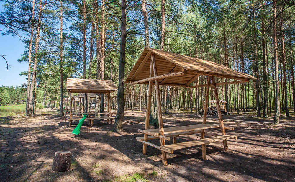 На территории находится: 35 беседок с мангалами и дровами, русская баня, биотуалеты и биодуш, шатер для корпоративов и для свадеб, площадки для пляжного волейбола, походная баня, биотуалеты, автомобильные стоянки и места для автодомов. На прокат можно взять палатки, лодки.