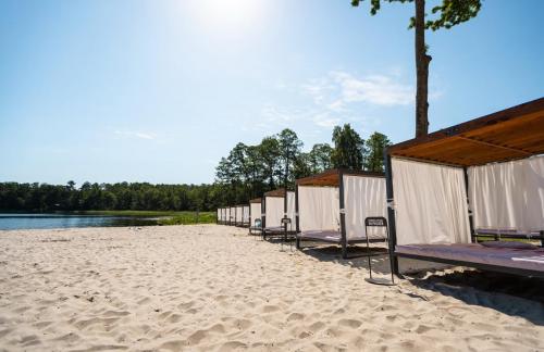 Мы находимся в 85 км от кольцевой дороге (час езды от Минска), у нас красивейшая природа, у нас тихий и спокойный отдых (музыку запрещено включать после 24:00), есть охрана, песчаный пляж идеален для детей.