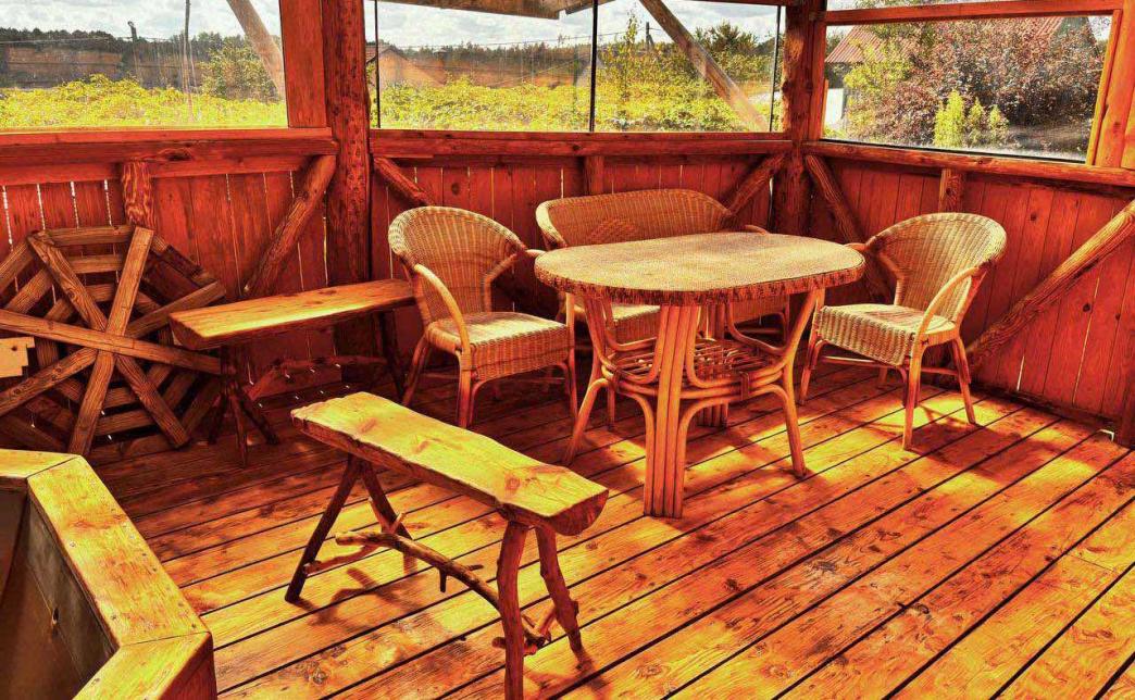 Дом сделан на 90% из дерева, оснащен всем необходимым: