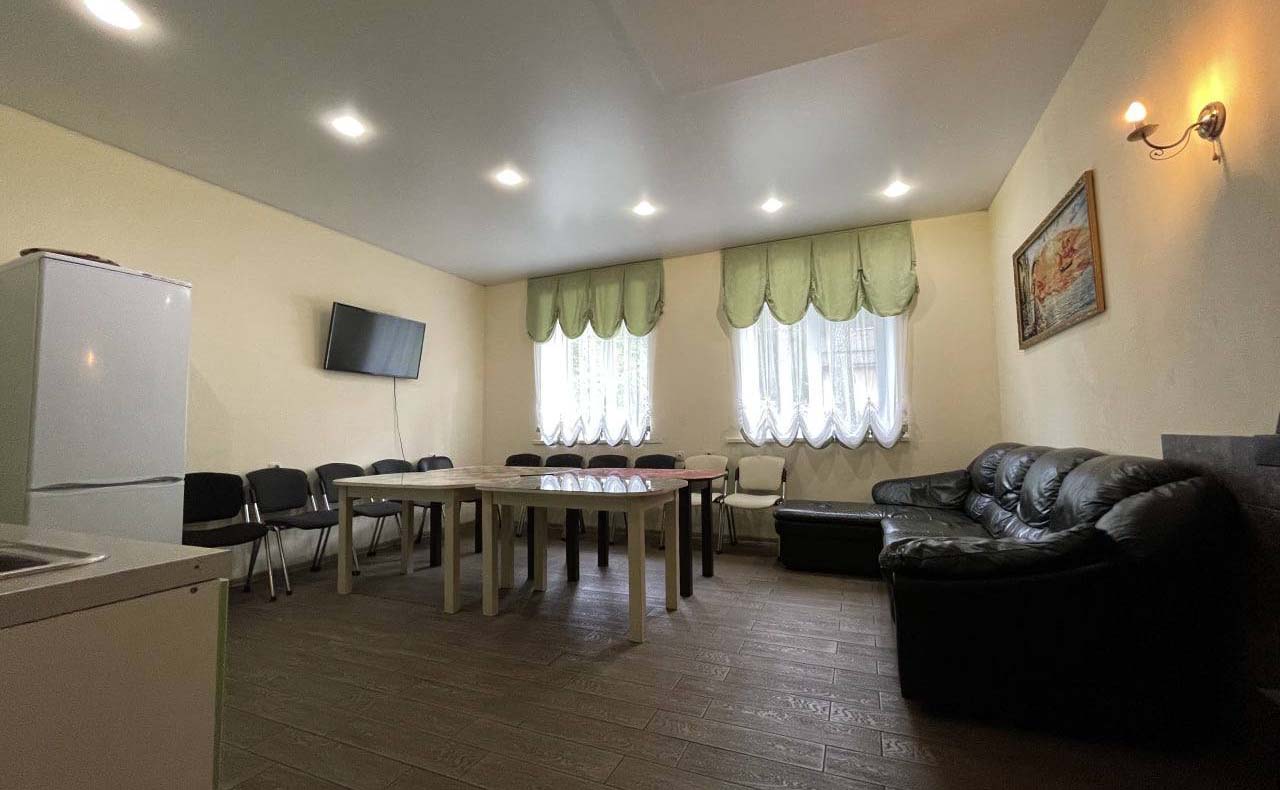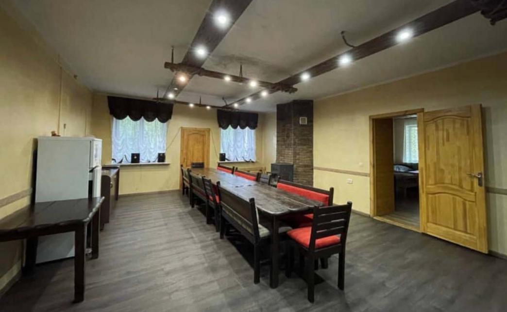 Дом до 17 человек, 17 спальных мест, 6 комнат, в каждой комнате свой санузел, есть посуда, плита, холодильник, телевизор, колонка, чайник, мангал, решетка, шампуры