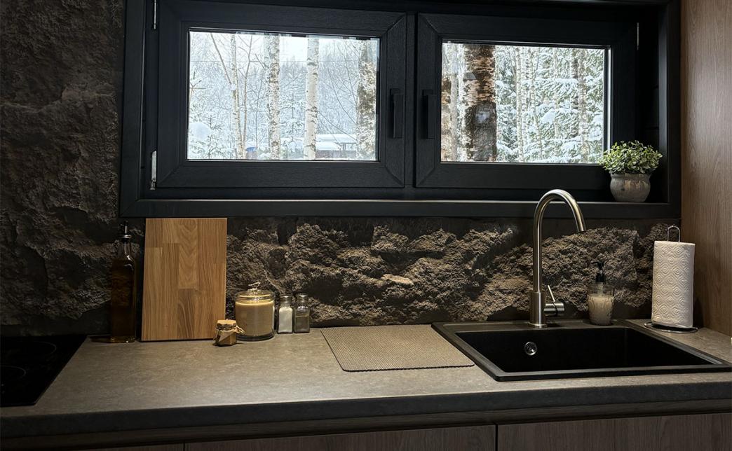 - Полностью укомплектованная кухня: холодильник, индукционная плитка, мини-печь ростер, электрочайник, капсульная кофемашина, посуда для приготовления и сервировки, столовые приборы и приборы для приготовления