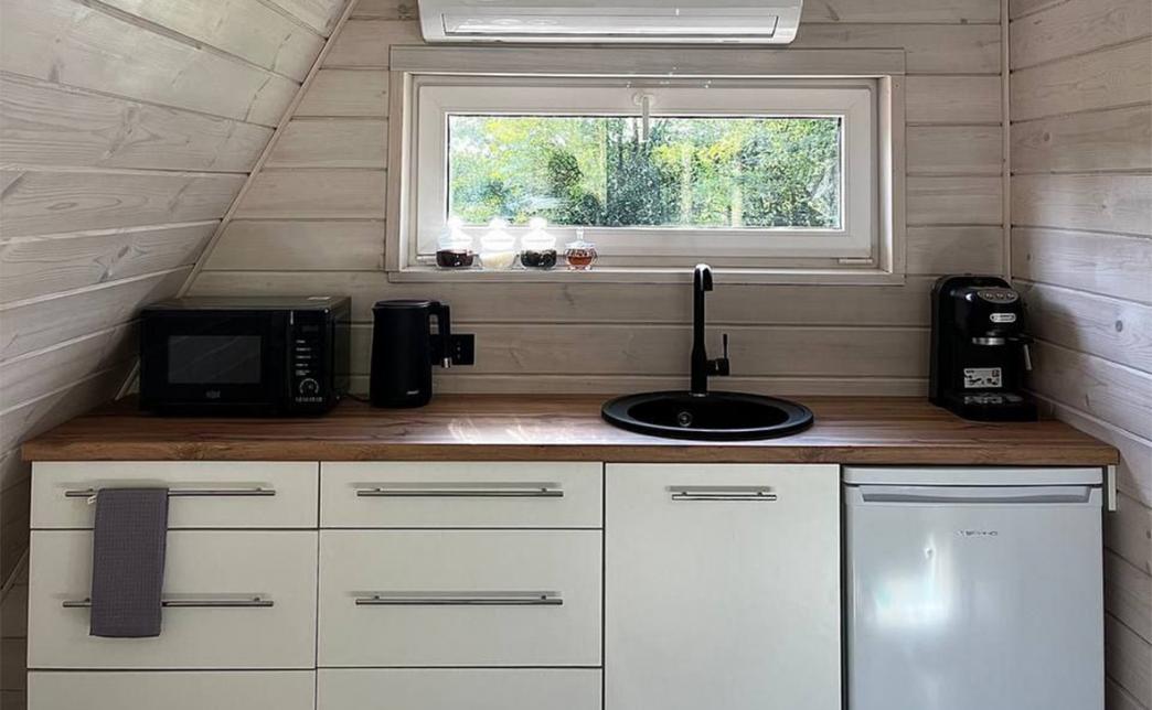 В домике есть интернет, проектор, холодильник, вся необходимая посуда, тостер, микроволновая печь, кофемашина, чайник, индукционная плитка, кондиционер. Мы оставляем для гостей травяной чай и мед, кофе, сахар, специи, подсолнечное масло и соевый соус. В ванной есть одноразовые зубные щетки и паста, полотенца, шампунь, гель для душа, ватные палочки, ватные диски и мицеллярная вода. На территории есть костровая зона и мангал (дрова и пакет угля мы оставляем).