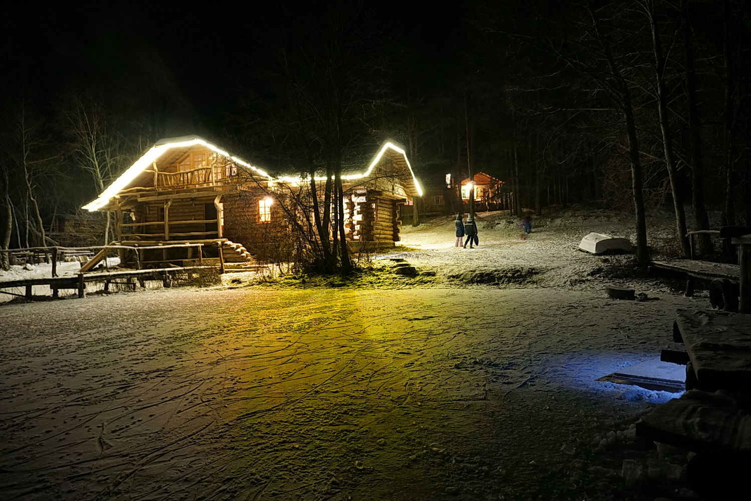 - В домиках все удобства. Паровое отопление. Работаем круглый год.