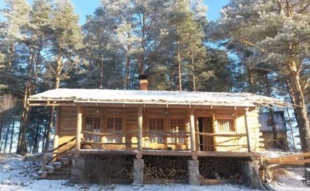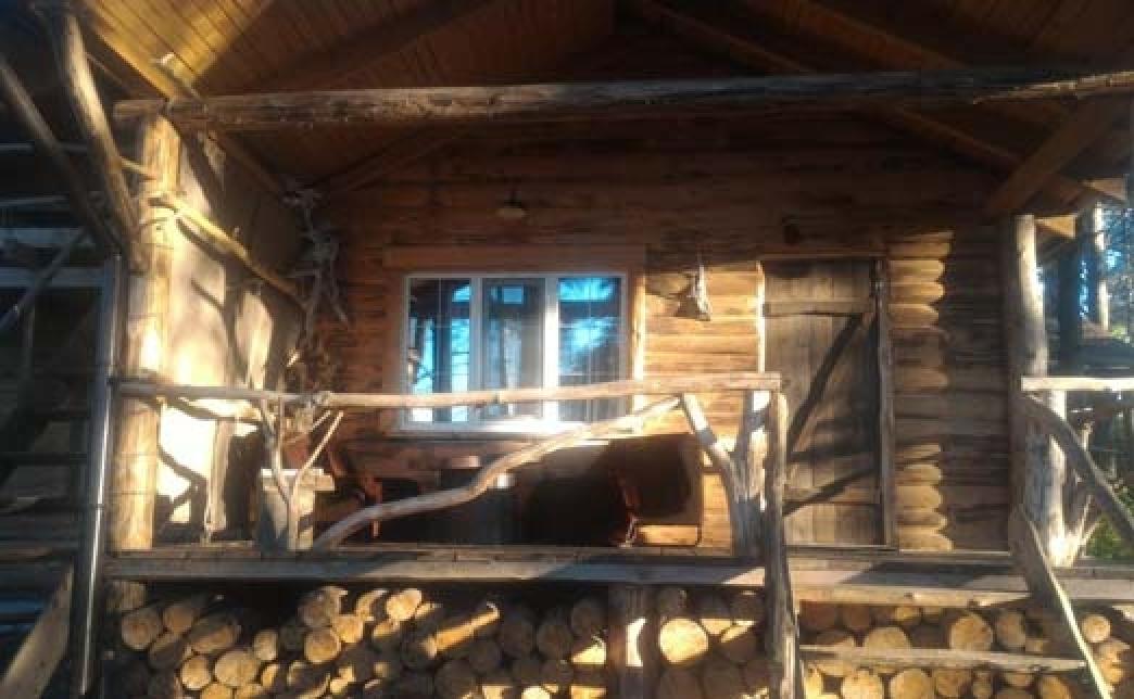 Рубленый домик мансардного типа. В нем с комфортом разместится одна семья либо небольшая компании. Максимальная вместимость шесть человек. На первом этаже компактно разместилась кухня, гостиная и санузел с душевой. В основе большого углового дивана лежат два ортопедических матраса. При желании два человека могут с комфортом тут переночевать. В мансарде две спальни, разделенные между собой легкой льняной перегородкой (глухих перегородок и стен между комнатами нет). Состоят из большой двуспальной кровати, односпальной кровати и тахты. В мансарду ведет винтовая лестница. Если у вас маленькие дети, просим обратить внимание на этот факт. Также это касается и любителей переусердствовать с алкоголем. Мебель сделана из натурального дерева, а занавески и шторы изо льна. Перед домом место для костра. На открытом крыльце можно кушать или пить кофе , наслаждаясь окружающей природой.