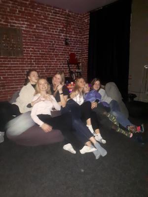 Уютная комната 40 квадратных метров вместимостью до 10 человек, оборудована большим проекционным экраном 135", качественной акустической системой, удобными диванами и кресла-мешками. К нам вы можете заказать свою любимую доставку или принести еду и напитки с собой, а кофе и чаем мы угостим Вас бесплатно.