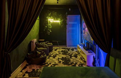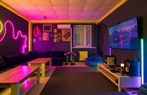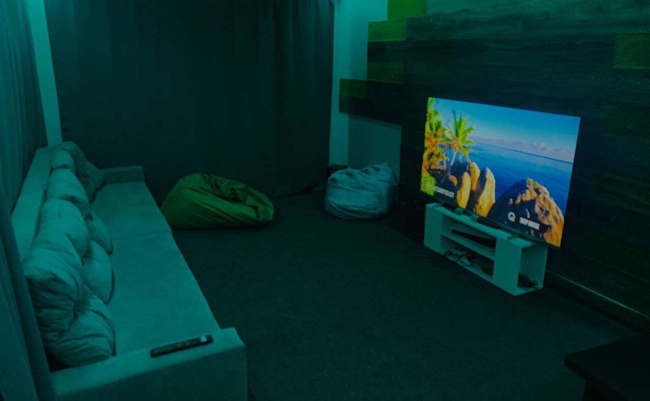 - Стильные приватные комнаты с большими экранами и всеми удобствами