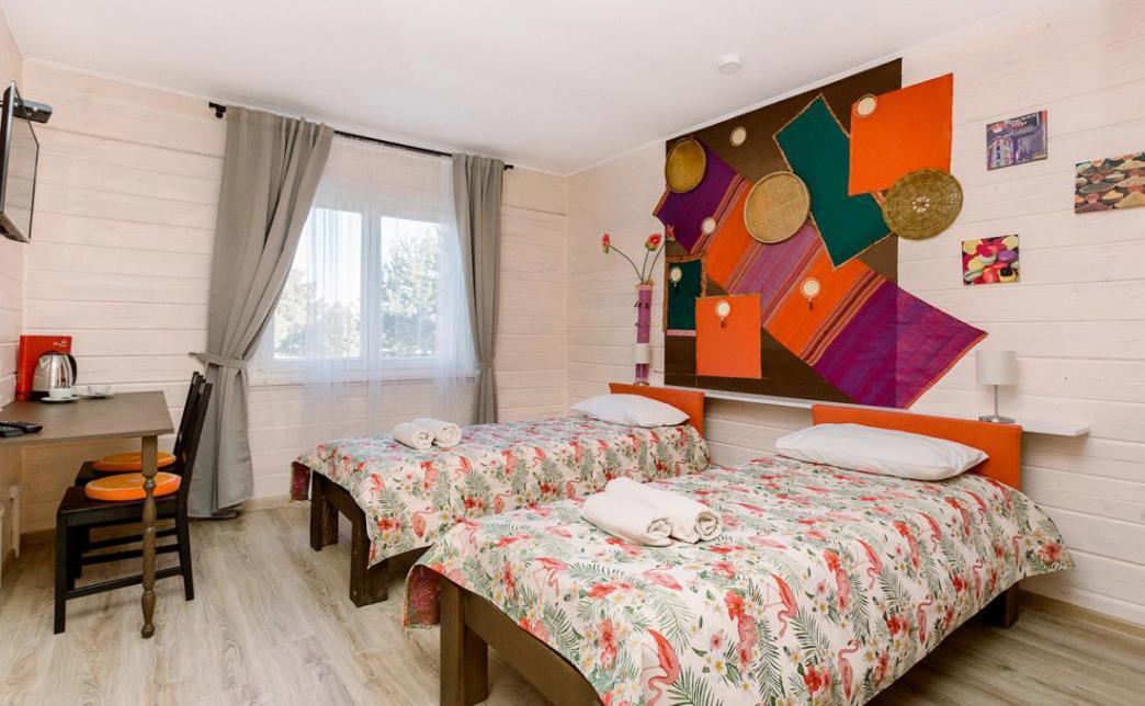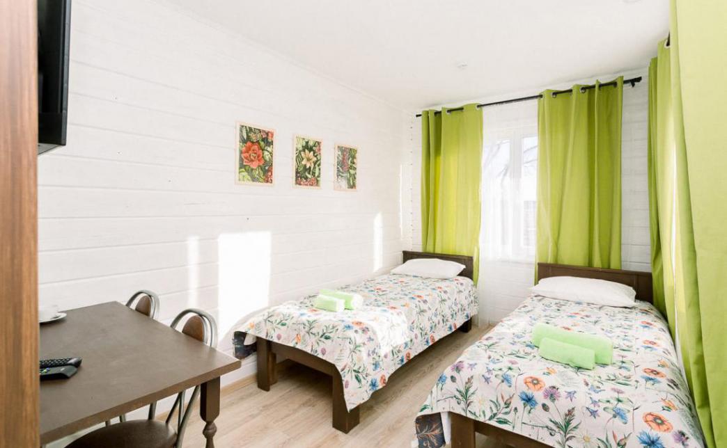 - Оснащение: холодильник, фен, чайник, чашки, полотенца, Wi-Fi, ТV, мыло, сушилка для белья