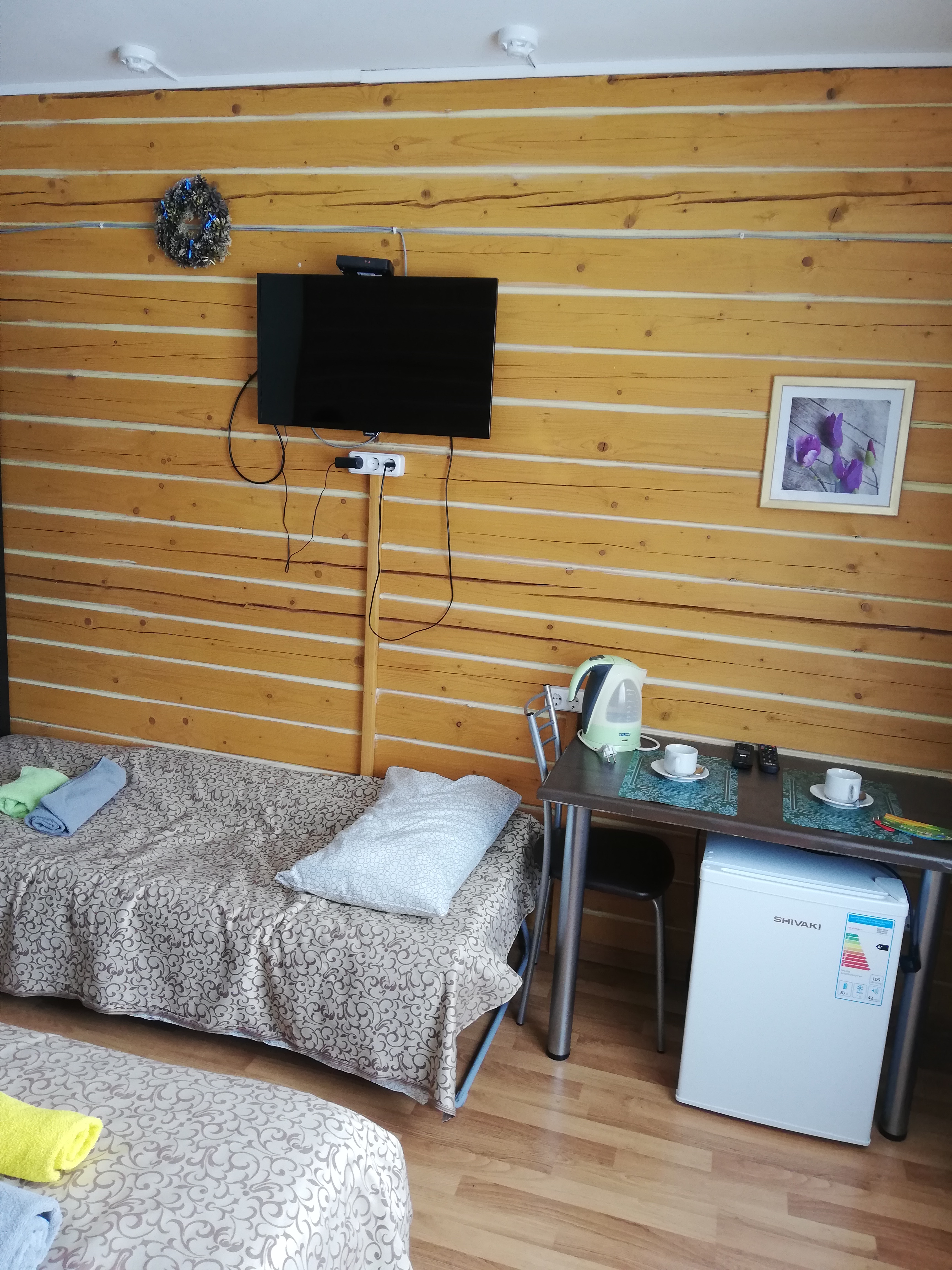 - Оснащение: холодильник, фен, чайник, чашки, полотенца, Wi-Fi, ТV, мыло, сушилка для белья