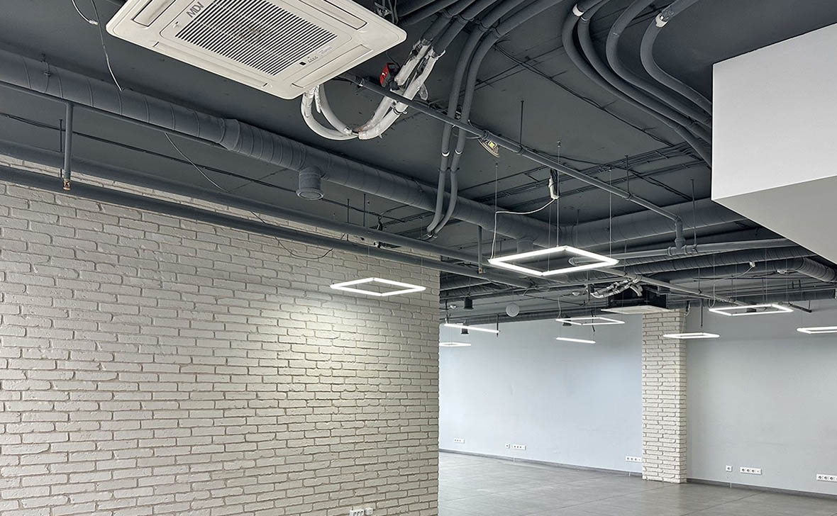 Инженерные системы и коммуникации: - приточно-вытяжная вентиляция с механическим побуждением движения воздуха - кондиционирование - центральное водоснабжение и отопление - разведены электрические и слаботочные сети - пожарная сигнализация