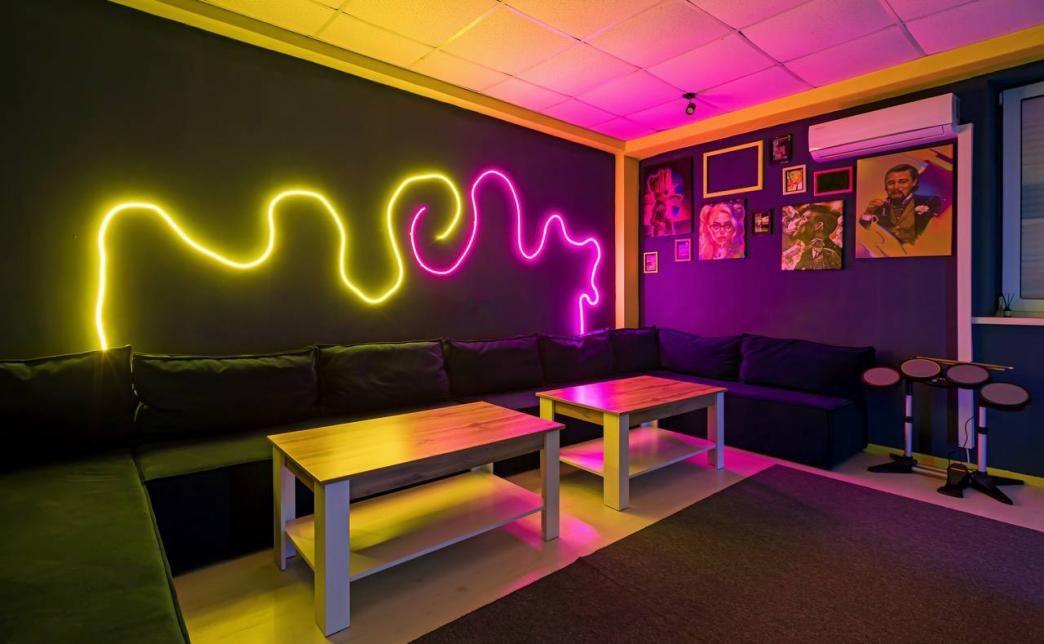Стильный декор, неон, акцентные картины, подсветка создает нужный вайб для Вашего праздника и с любого ракурса превращает комнату в фотозону, а доступные развлечения делают Ваш отдых поистине ярким и насыщенным.