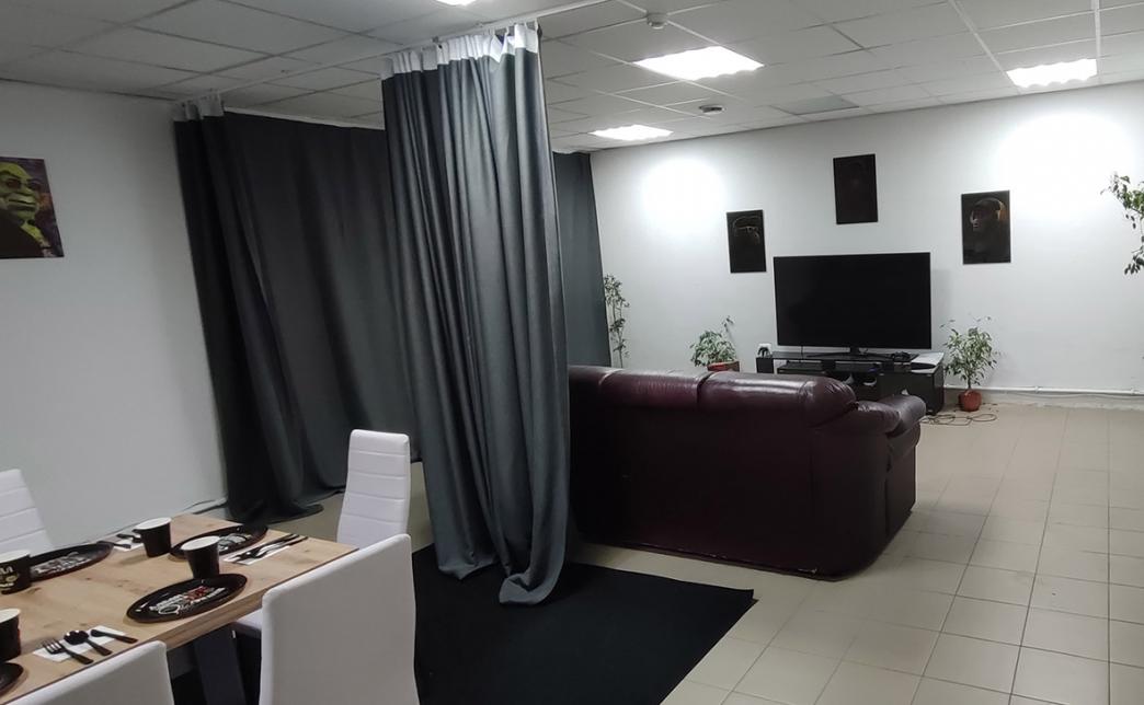 Мини-логово представляет собой небольшое, уютное пространство в главном зале, огороженное плотной шторой по периметру.