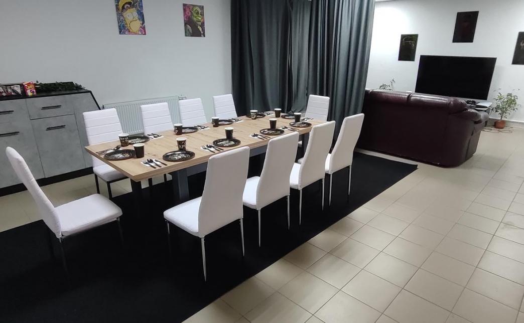 Наше преимущество - это новая комфортная мебель и новое оборудование. Никаких дополнительных платежей: все, что перечислено, входит в стоимость. В стоимость также входит сервировка стола на 10 персон и уборка помещения, мы сделаем Ваш праздник максимально беззаботным! Вы можете забронировать все наше пространство с отдельным помещением, где может разместиться кейтеринг с официантами и баром, чтобы Вам могли торжественно вынести блюда и напитки к столу!