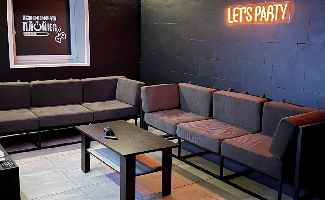 - VIP-2 вмещает 18 человек, в ней есть "PS 5", проектор с экраном 150”, аудиосистема, караоке, светомузыка, холодильник, стол-трансформер, диваны, кулер с водой, микроволновка, чай, кофе и мини-бар с безалкогольными напитками