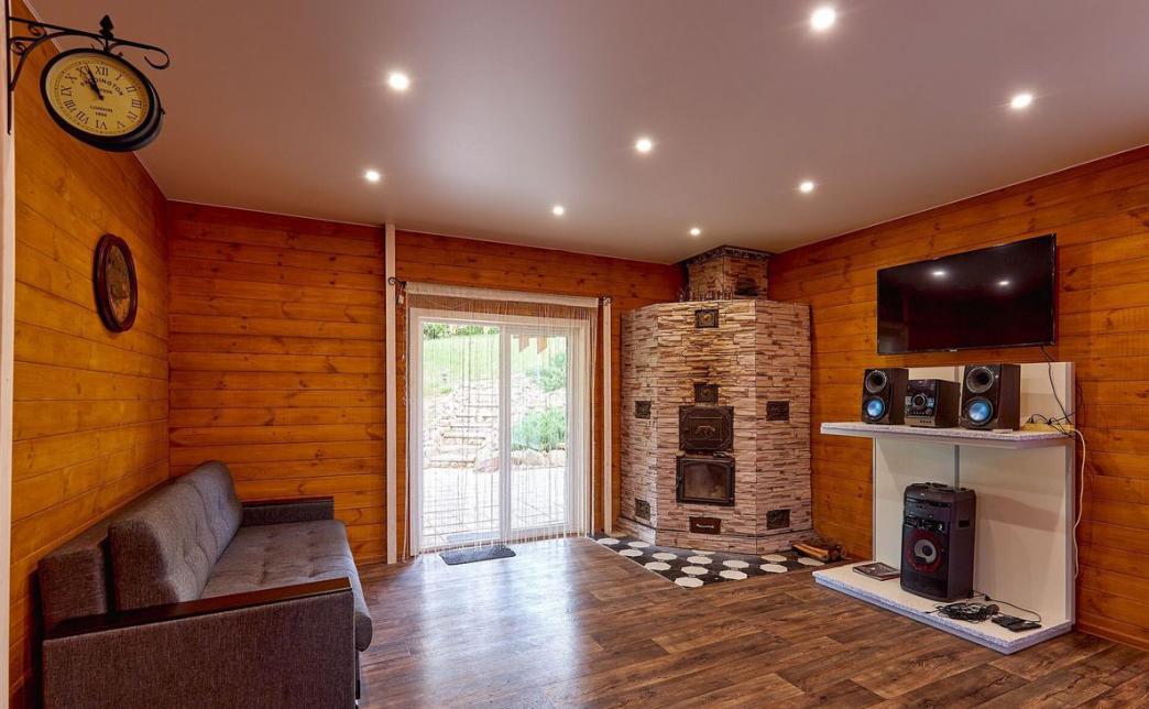 В доме есть ТV, Wi-fi, PlayStation, караоке, барная стойка, также установлен пилон. Всего в усадьбе могут комфортно расположиться на ночь 20 человек. Возле дома есть просторная летняя терраса для отдыха. Агроусадьбу можно забронировать как в выходные, так и в будние дни (цена дешевле). Место прекрасно подходит для организации праздника, для этого можно арендовать дом только на день, без ночевки. Приготовление стола оговаривается по телефону.
