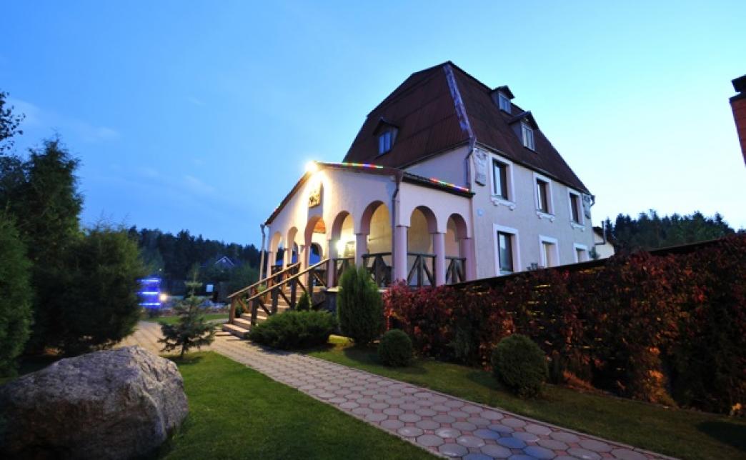 Спальных мест - 25. Максимум - 50 человек. В усадьбе присутствует атмосфера далеких рыцарских времен. Более 400 м2 художественной лепки и декоративной штукатурки. Это: герб Великого княжества Литовского, сцена из выдающегося произведения белорусского поэта М. Гусовского "Песня о зубре" изображенная в виде живописи на стене (охота короля Витовта на тура ), богатырские рыцари охраняющие усадьбу. Также можно увидеть стены старого города и символ Менска. Для перевоплощения в другой мир и образ предлагается фото на память в кольчуге со шлемом и мячом в руке.