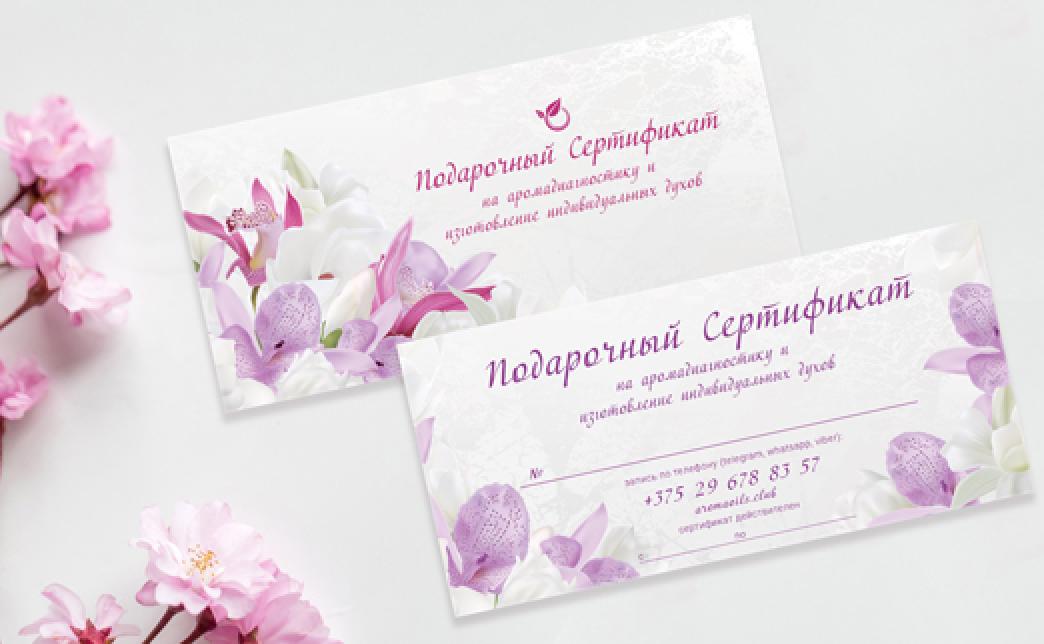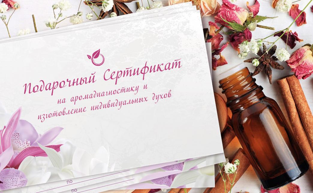 Сертификат на полную аромадиагностику и изготовление индивидуальных духов объемом 20 мл.