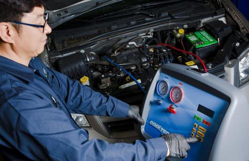 Заправка происходит по определенной технологии с помощью специального оборудования в несколько этапов: осмотр системы кондиционирования, проверка на герметичность, вакуумирование системы и заправка кондиционера, после производится проверка работы кондиционера.