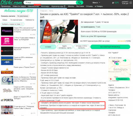 - Скидка распространяется только на заправку авто (марка, модель, госномер) зарегистрированном для получения промокода. Количество регистрируемых автомобилей на один аккаунт не ограничено