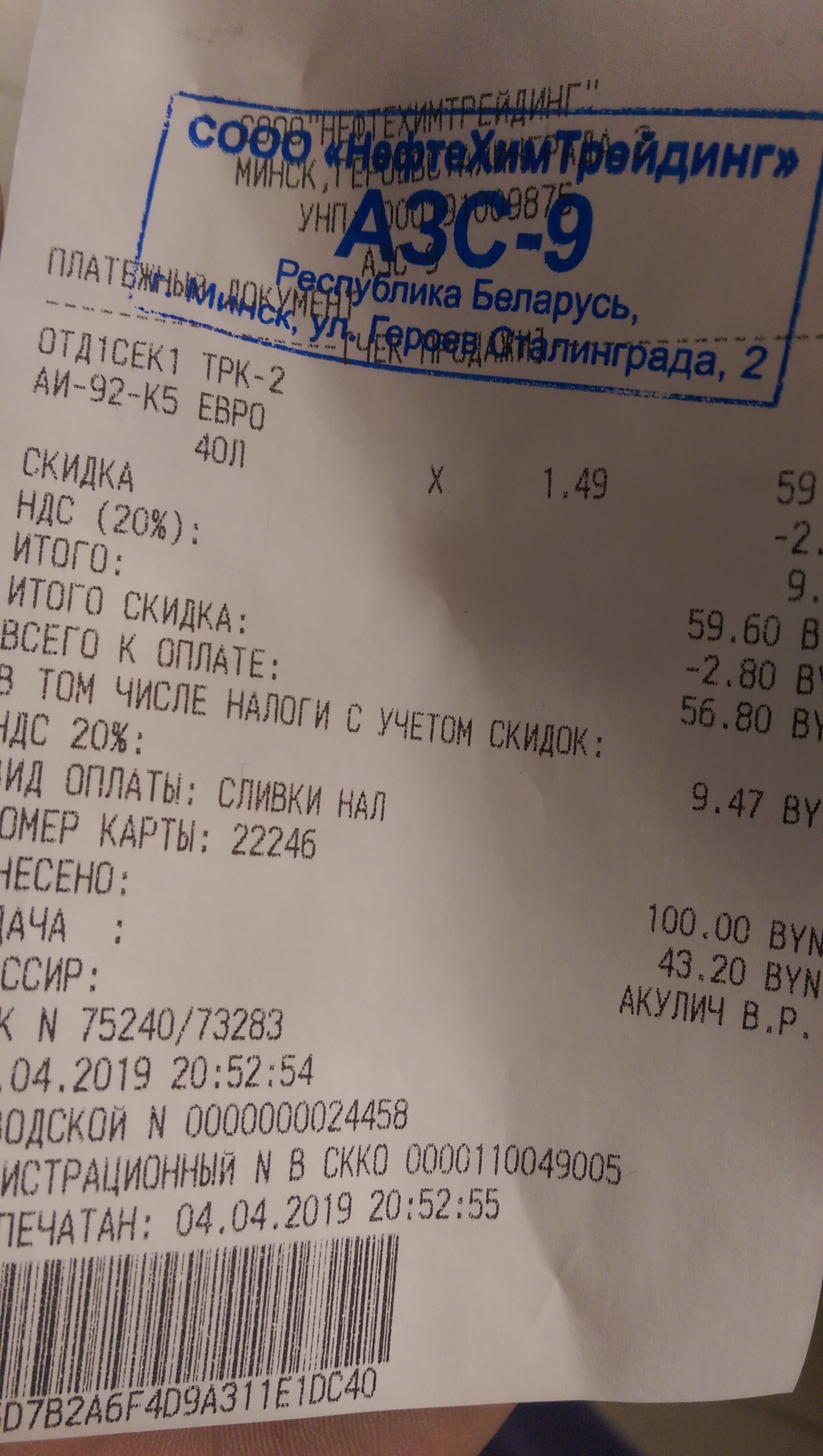 - Пожалуйста, не задерживайте оператора при оплате топлива. Сфотографируйте промокод в телефон чтобы оперативно называть его для получения скидки
