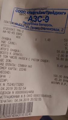 Качество топлива соответствует всем установленным нормам и стандартам РБ.