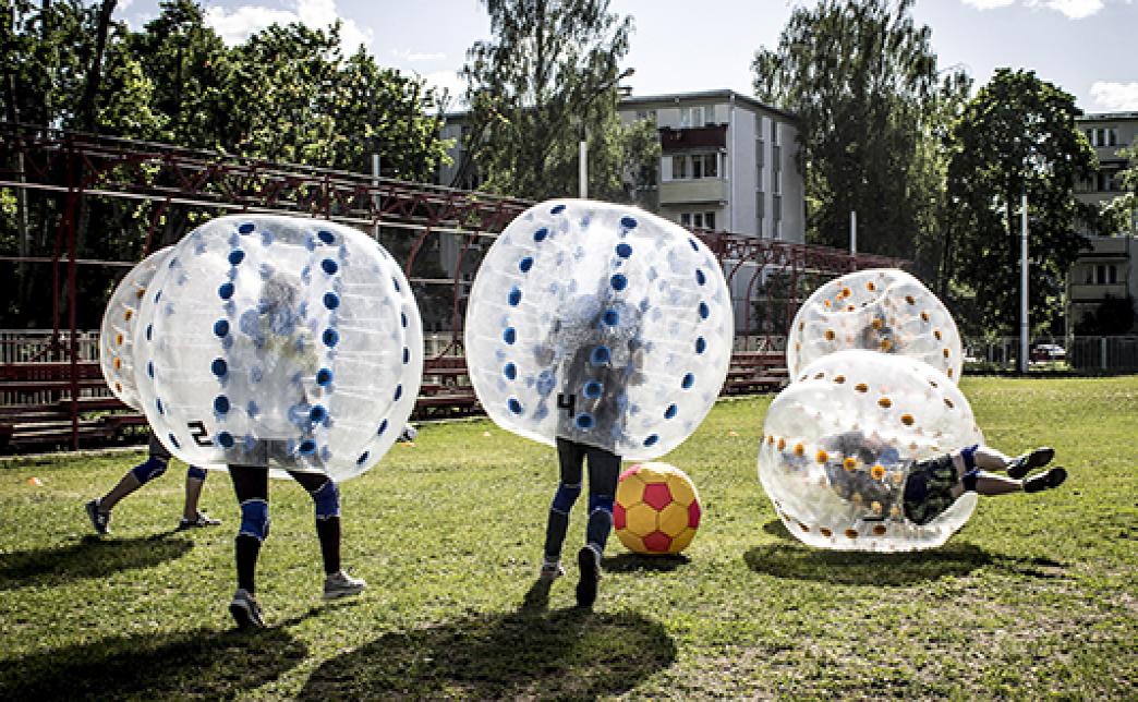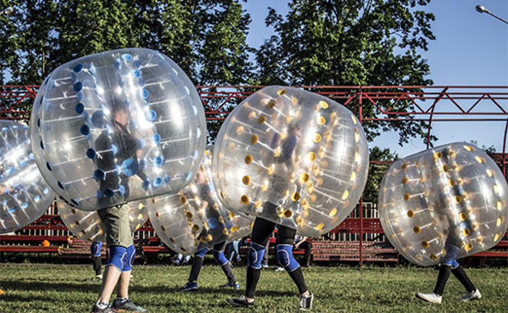 Единственная в своём роде игра, подразумевающая полный контакт, но при этом безопасная. Бампербол защищает всё тело выше колена амортизируя все удары, Вы словно падаете на 10 матрасов. Кувыркайтесь, толкайтесь, делайте трюки - все безопасно и безумно весело!