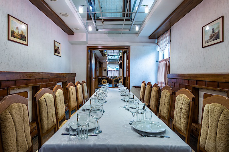 - Корпоратив: 13 холодных закусок, 1 горячая закуска, 1 порционный салат, 3 общих салата, 5 горячих и 3 гарнира на выбор (порционно), 1 горячее порционно (ассорти из 4-х блюд).