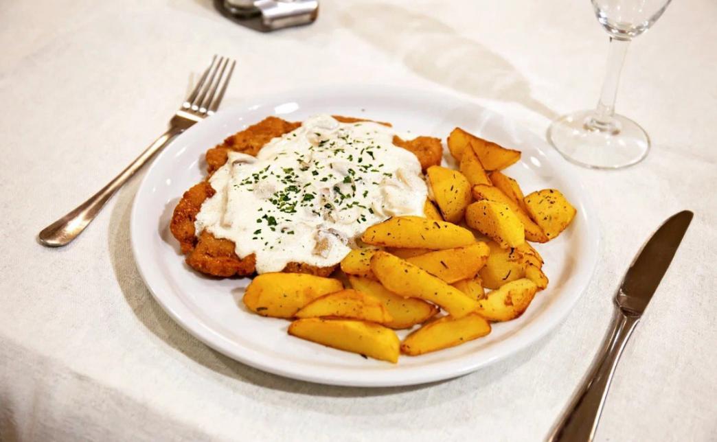 Ржизек по чешски с картофелем фри со сливочно-грибным соусом (300 г)