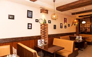 Состав: свинина, деруны картофельные, сметанный соус, зеленый салат, томат черри
