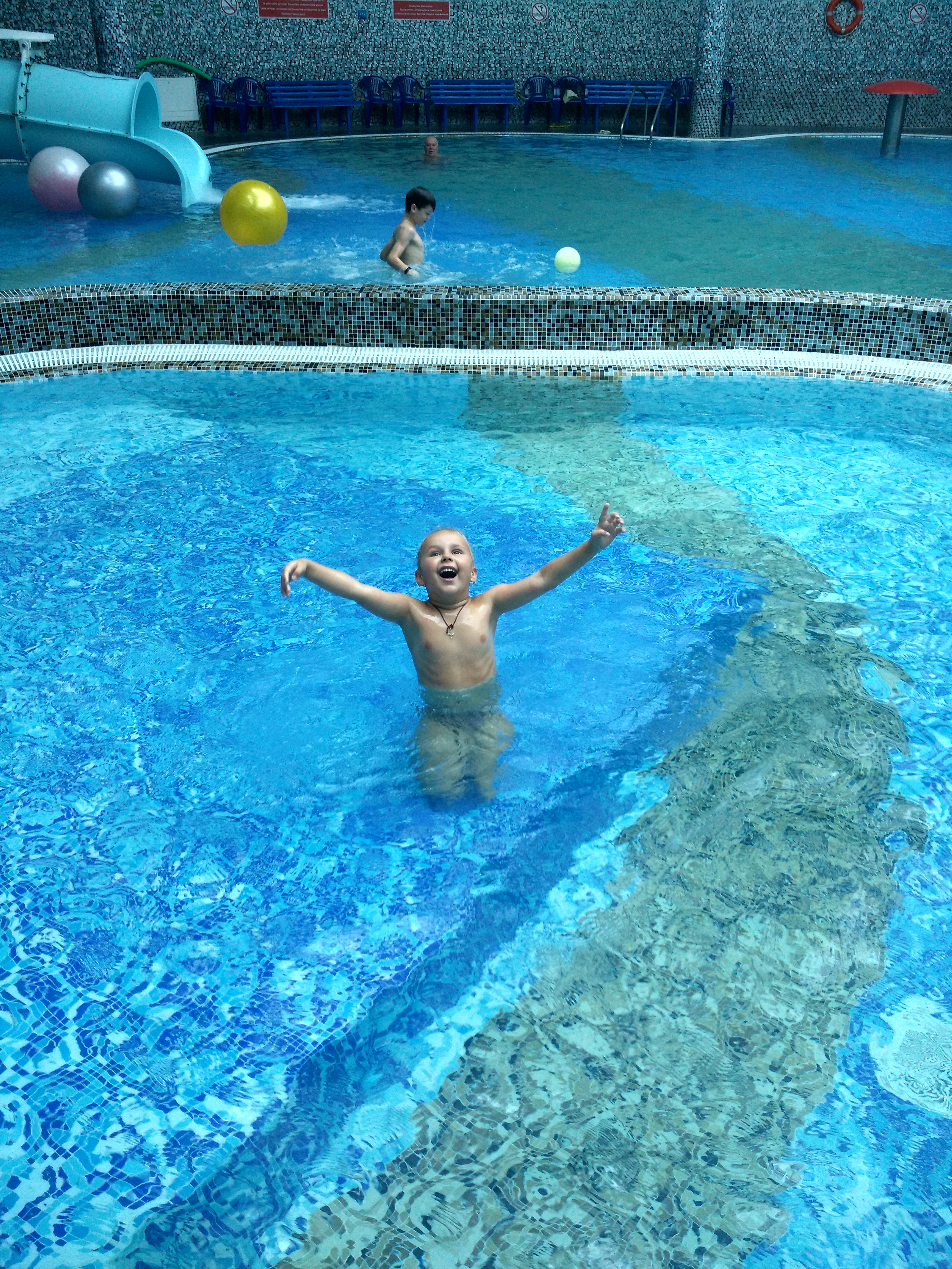 Бассейн не большой, глубина от 120 до 160 см, есть мячи - большие и маленькие, всем хватает. Сауны показались все одной температуры, очень скользкий пол, нужно быть осторожным. Несколько водных пушек. Очень приветливый администратор, ей отдельная благодарность.В целом все понравилось, сходите, не пожалеете.