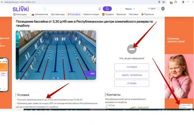 - Промокод дает право на скидку 50% на посещение бассейна в Республиканском центре олимпийского резерва по гандболу