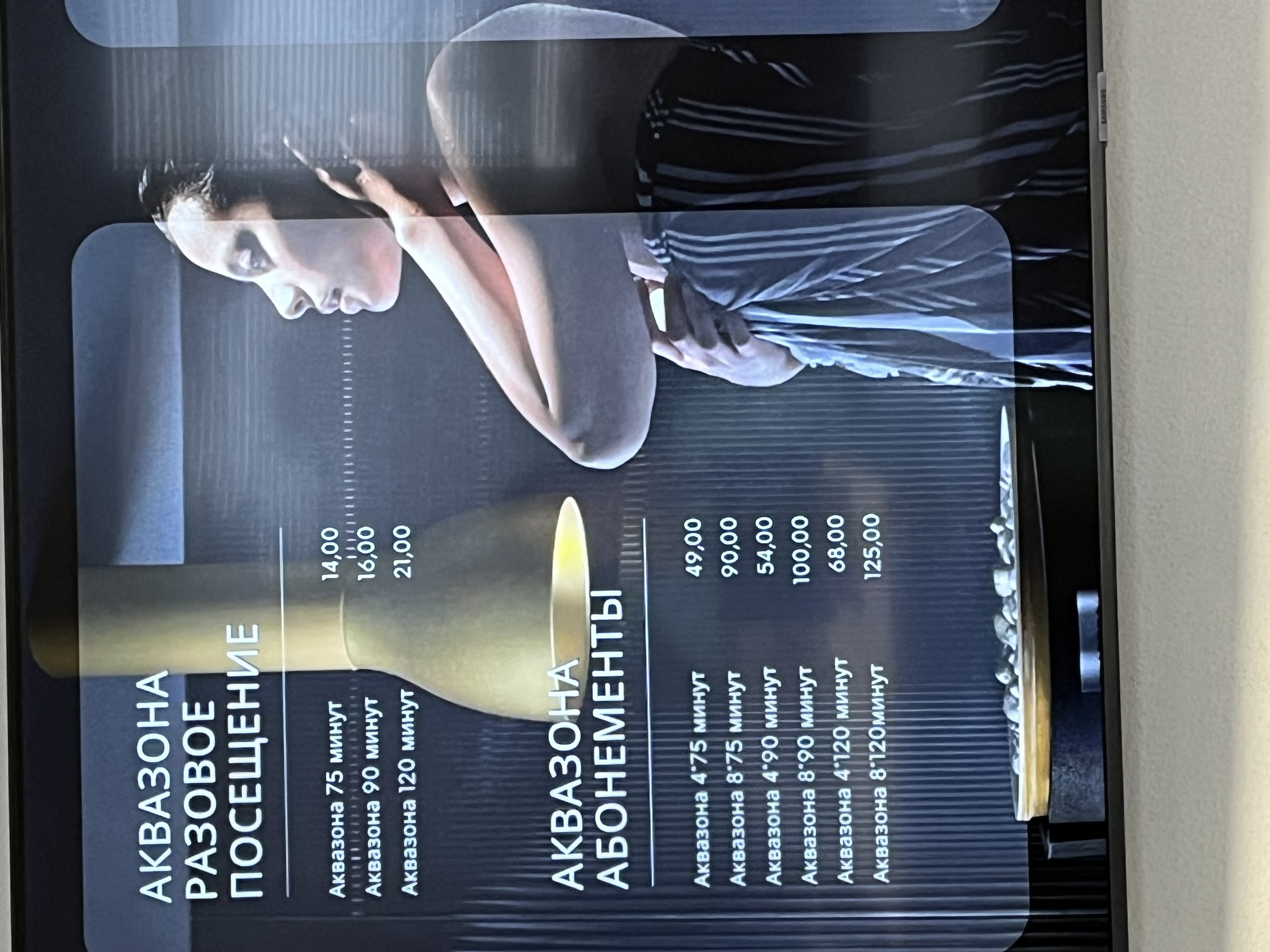 - Вход в "АкваТермальную" зону на 120 мин осуществляется в будни дни с 15:30 до 20:55, в выходные и праздничные дни с 9:30 до 20:55, покинуть зону необходимо не позднее 23:00
